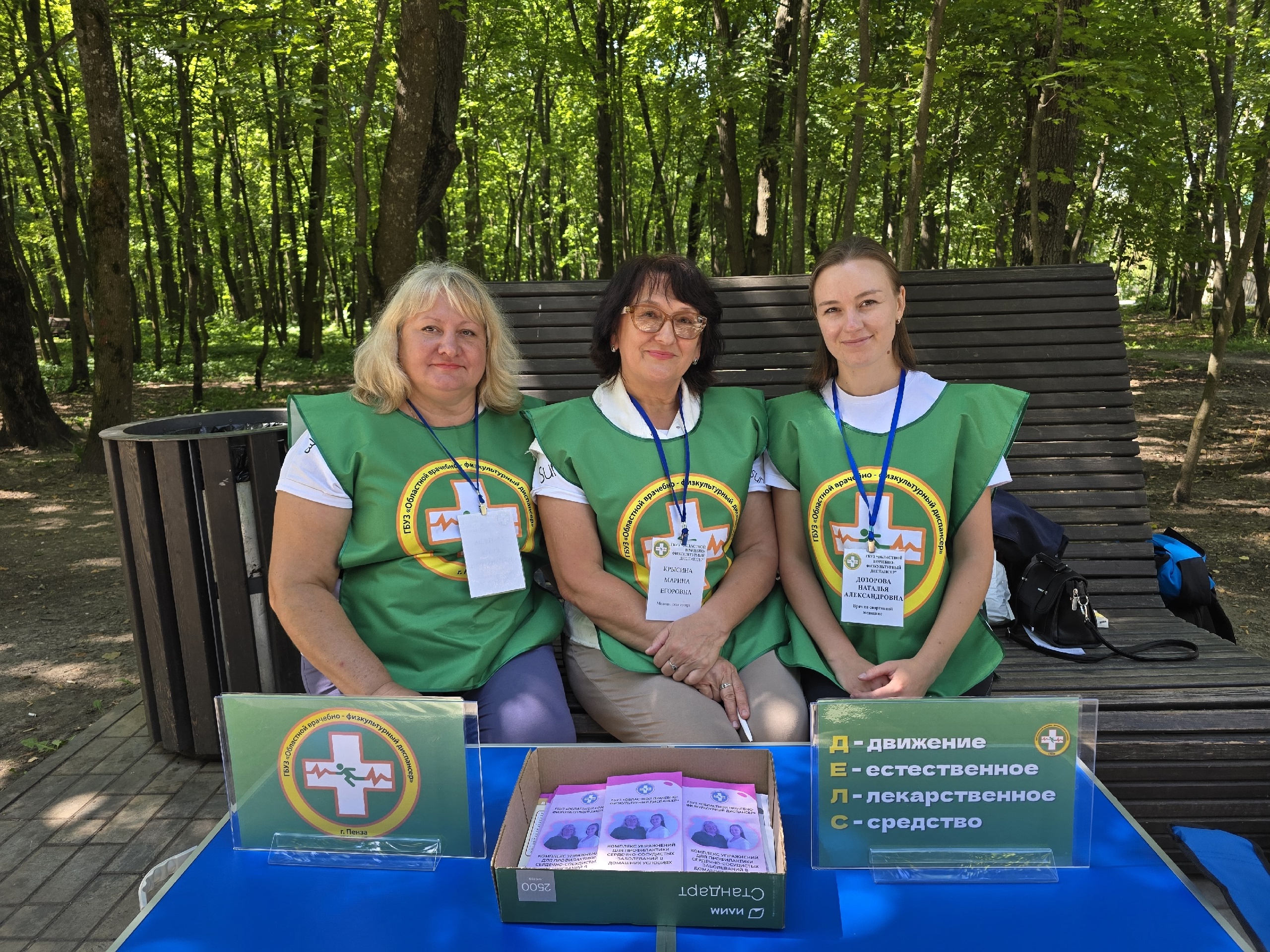 8 августа, на территории Парка "Союз" (Веревочный парк) по адресу: г. Пенза, ул. Попова 30/2, в рамках профилактической акции, врач по спортивной медицине Дозорова Наталья Александровна, медицинская сестра врача по спортивной медицине Крысина Марина Егоровна и инструктор – методист по лечебной физкультуре Братцева Юлия Александровна, продемонстрировали комплекс упражнений для профилактики сердечно – сосудистых заболеваний.