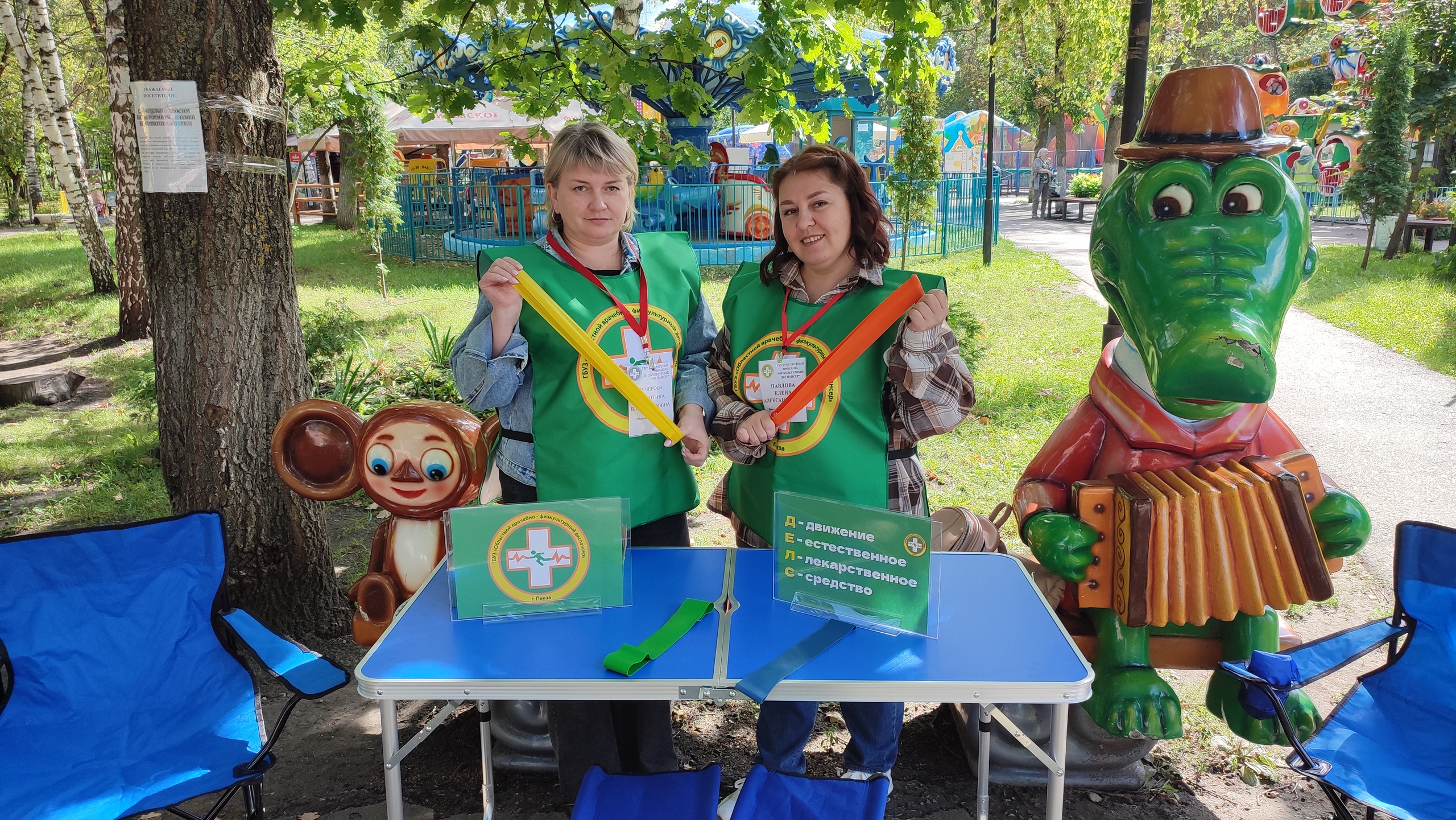 29 августа, на территории Детского парка в Арбеково, по адресу: г. Пенза, ул. Кронштадтская 1а, в рамках профилактической акции, врач по спортивной медицине Павлова Елена Александровна, медицинская сестра врача по спортивной медицине Кучерова Валентина Владимировна провели мастер-класс физических упражнений для детей и взрослых: